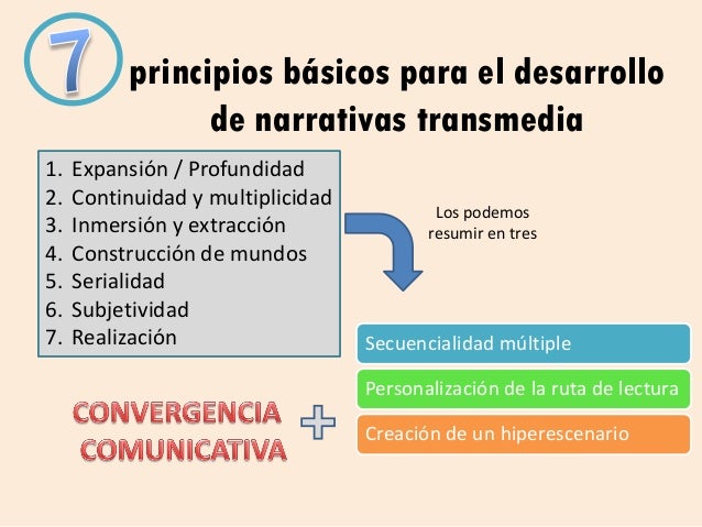 Henry Jenkins defini贸 los 7 principios de la narrativa transmedia:- Expansi贸n VS. Profundidad.